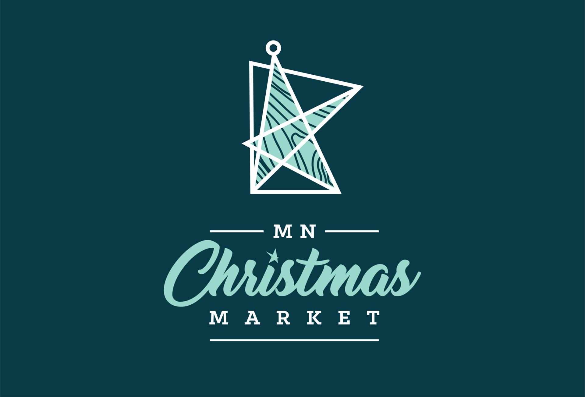 Logo for "MN Christmas Market" featuring a geometric star above the event name in stylized text on a dark teal background.